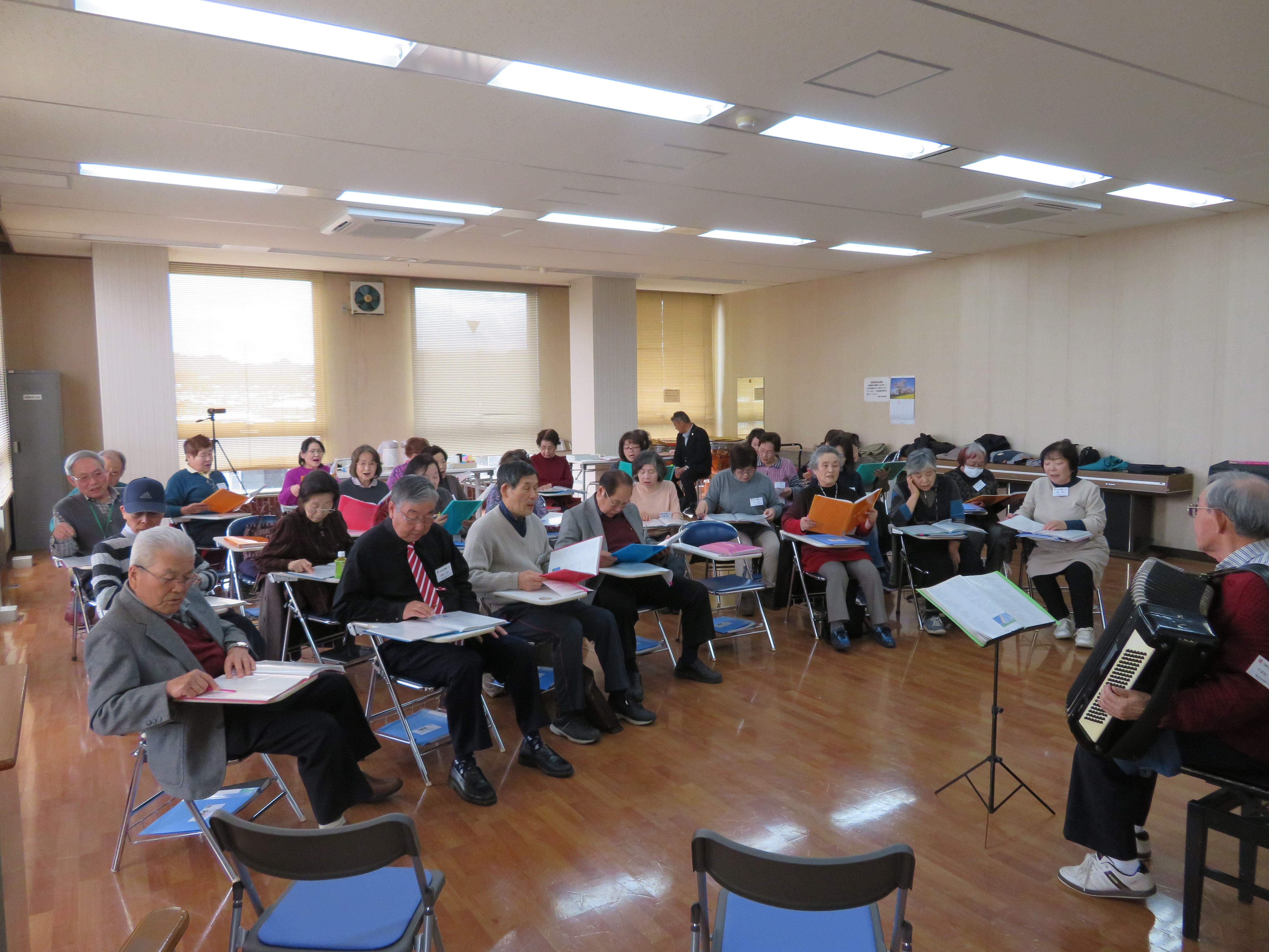 うたごえ喫茶 2019/04/15 2019.4.15 4月11日(木)、平成31年度最初の事業『うたごえ喫茶』を開催しました。 佐藤貞夫地域づくり部会長の挨拶の後に 千本松四郎さんのアコーディオン伴奏で『うたごえ喫茶』のスタートです。 思い出の歌や懐かしい歌をみんなで楽しく歌いました。 休憩の後でサプライズの誕生会も行いました。
