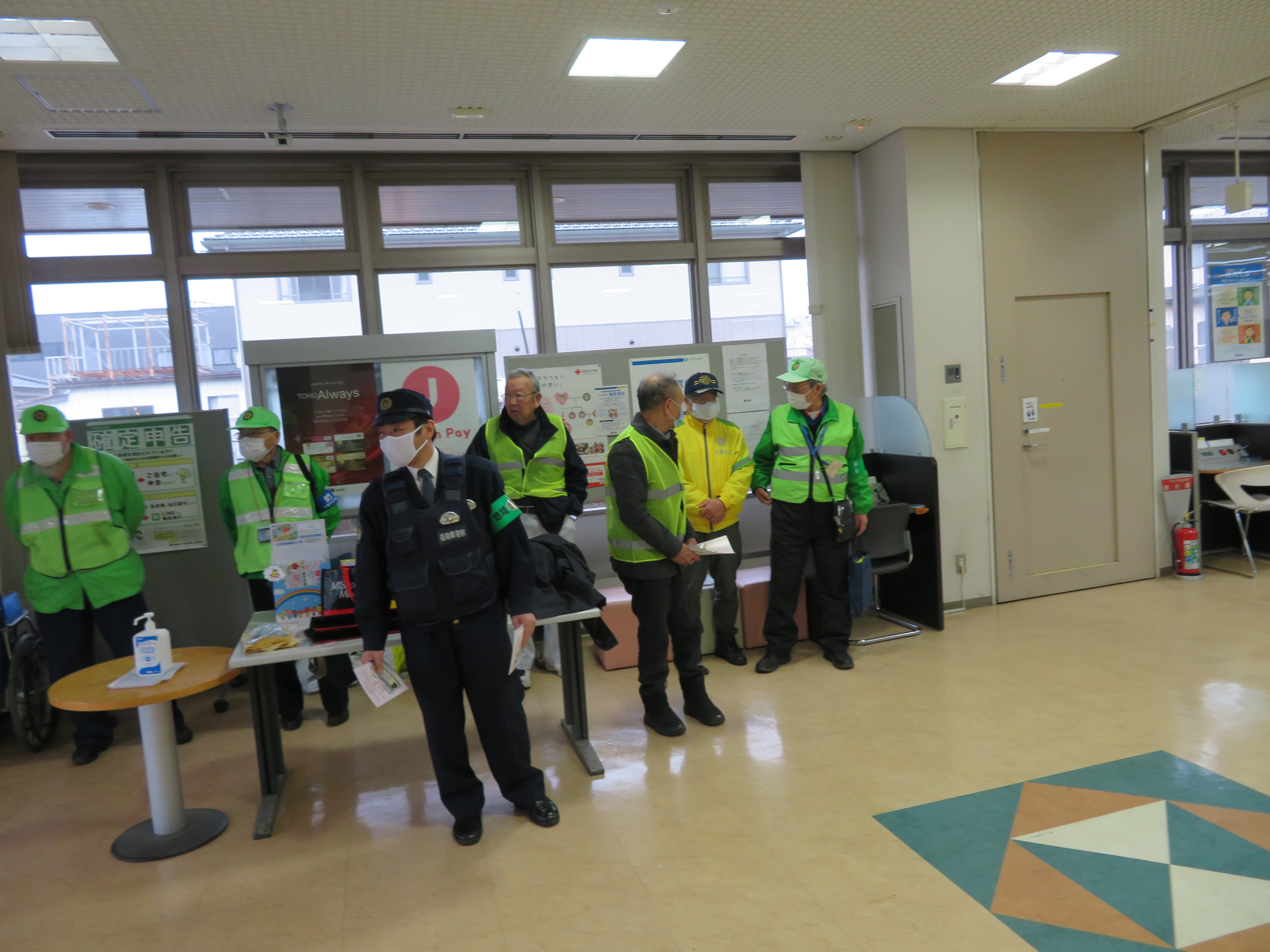 特殊詐欺防止活動を行いました 2021/02/16 2021.2.16 2月15日(月)、環境防災部会による特殊詐欺防止活動を行いました。 年金支給日に合わせて東邦銀行保原支店の窓口に訪れた高齢の方に チラシを配りながら注意を呼び掛けました。