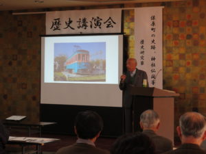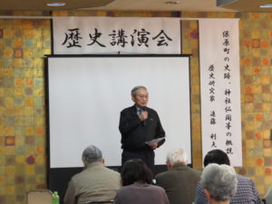 「歴史講演会」開催しました 2018/03/26 2018.3.25 3月25日(日)保原中央自治振興会地域づくり部会主催会の「歴史講演会」を開催しました。 保原町在住の歴史研究家遠藤利夫先生を講師に保原町の史跡、神社仏閣などのついて説明を頂きました。 参加者の方からは、いつも目にしている所の歴史がわかってとても良かった、歴史の側面を教えてくれて面白かった等の感想が寄せられました。