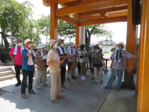 史跡巡り 2022/07/04 7月3日に旧伊達町の史跡巡りを行いました。 暑い日にもかかわらず、貴重な史跡を拝見し、私たちの到着を待っておもてなしまで頂きましてありがとうございました。 *福厳寺 *水雲神社 *光台寺供養塔 *光台寺別当観音堂 *富田勘之丞銅像 *金秀寺 *斎藤彦内の墓(福源寺) *熱中症・コロナ感染対策を行いながら開催しました。