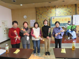 また、休憩後には千本松四郎さんから参加者全員に手作りボタンアートのプレゼントがあり、2月3月の誕生会も行いました。