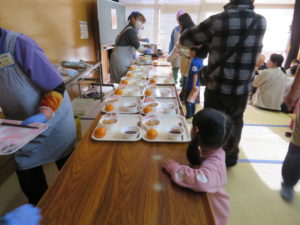 みんなのまちなか食堂 2025/12/26 12月のみんなのまちなか食堂はお餅です。 献立 お餅 雑煮餅・あんこ餅(子供はきなこ)・ひきな餅 さつまいもとキャベツのサラダ 漬物 みかん 今月も食材のお支援を頂きました。 ・パルシステム福島伊達センター 様 ・酒井誠造 様 ありがとうございました。