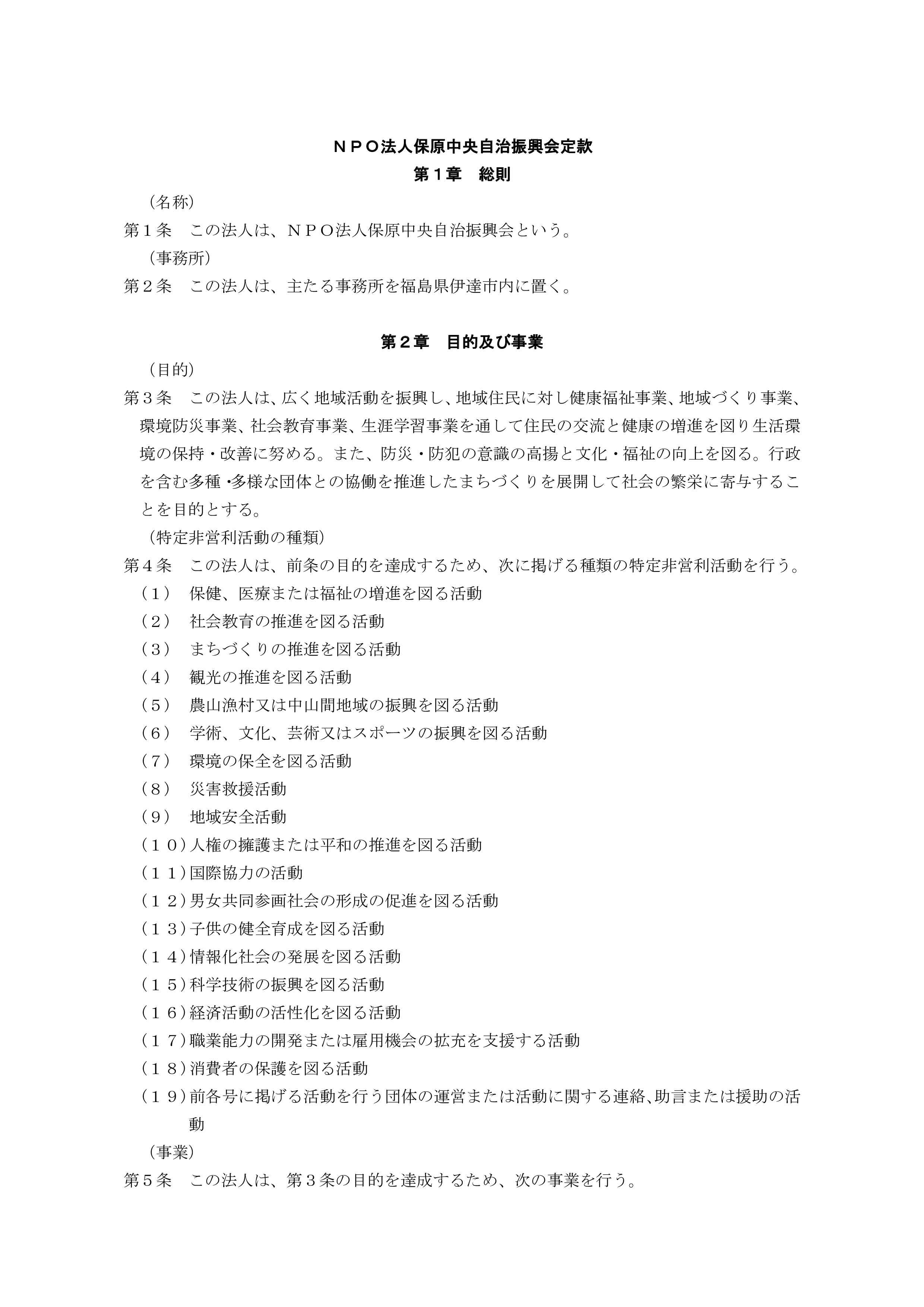 自治振興会とは 住所 〒960-0612 福島県伊達市保原町宮下111番地4(保原中央交流館内2F) TEL 024-563-1131 FAX 024-563-1317 財務諸表 令和7年度 令和7年度事業計画一覧表(PDF) 収支予算書(PDF) 地方自治組織活動支援交付金事業計画書(PDF) 令和6年度 事業報告書(PDF) 収支計算書(PDF) 令和6年度事業計画一覧表(PDF) 収支予算書(PDF) 地方自治組織活動支援交付金事業計画書(PDF) 令和5年度 事業報告書(PDF) 収支計算書(PDF) 令和5年度事業計画一覧表(PDF) 収支予算書(PDF) 地方自治組織活動支援交付金事業計画書(PDF) 令和4年度 事業報告書(PDF) 収支計算書(PDF) 令和4年事業計画一覧表(PDF) 収支予算書(PDF) 地方自治組織活動支援交付金事業計画書(PDF) 令和3年度 令和3年事業計画一覧表(PDF) 事業報告(PDF) 令和3年事業実績(報告)一覧表(PDF) 収支予算書(PDF) 収支決算書(PDF) 地方自治組織活動支援交付金事業計画書(PDF) 令和2年度 令和2年事業計画一覧表(PDF) 事業報告(PDF) 令和2年事業実績(報告)一覧表(PDF) 収支予算書(PDF) 収支決算書(PDF) 地方自治組織活動支援交付金事業計画書(PDF) 令和元年度 事業計画一覧表(PDF) 事業報告(PDF) 令和元年度事業報告一覧表(PDF) 収支予算書(PDF) 収支決算書(PDF) 地方自治組織活動支援交付金事業計画書(PDF) 平成30年度 平成30年度事業計画一覧表(PDF) 事業報告(PDF) 地域自治組織活動支援交付金事業計画書(PDF) 収支予算書(PDF) 収支決算書(PDF) 平成29年度 事業報告(PDF) 事業実施報告(PDF) 収支決算書(PDF) 事業計画書(PDF) 事業収支予算書(PDF) 定 款 定 款(PDF)